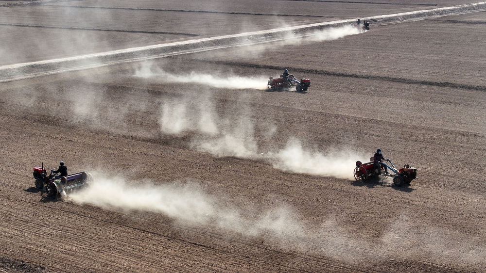近日,随着天气逐渐转暖,宁夏银川市贺兰县各乡镇积极推进春耕生产工作。 新华社记者 王鹏 摄