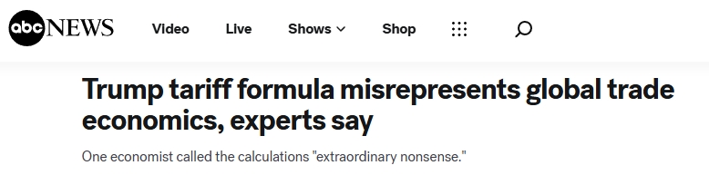 据美国广播公司新闻网站(ABC News)5日报道,众多经济学家指出,美国政府用于制定这些关税的计算方法显然站不住脚。特朗普当地时间4日声称,美国将计算对美国构成了极大威胁的国家的所有关税、非关税壁垒和其他形式的综合税率。