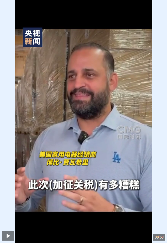 美国家电经销商博比·贾瓦希里在接受福克斯新闻采访时表示,从中国进口的产品关税实际上是由进口商支付的,并最终转嫁到美国消费者身上,持续的高关税甚至可能令很多依赖进口的企业倒闭,进而造成大量人员失业和经济崩溃。