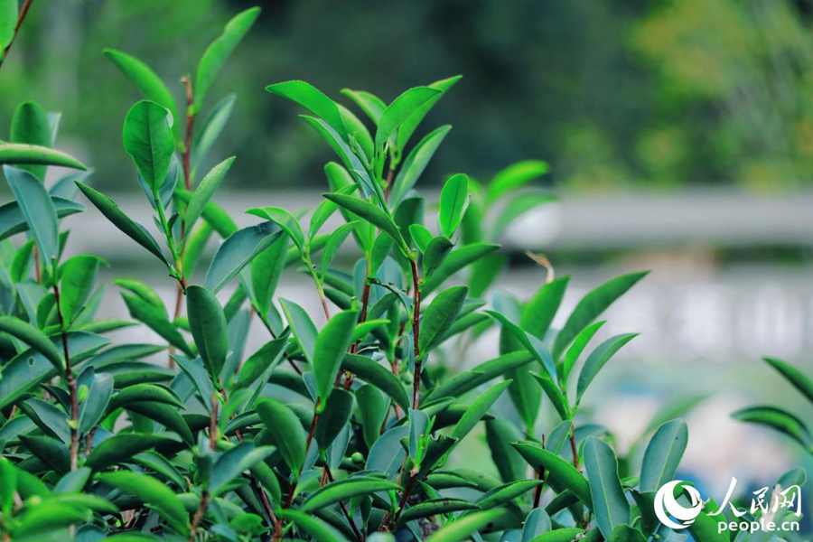 武夷山市星村镇燕子窠生态茶园内,茶芽挤满茶树梢头。人民网 李唯一摄