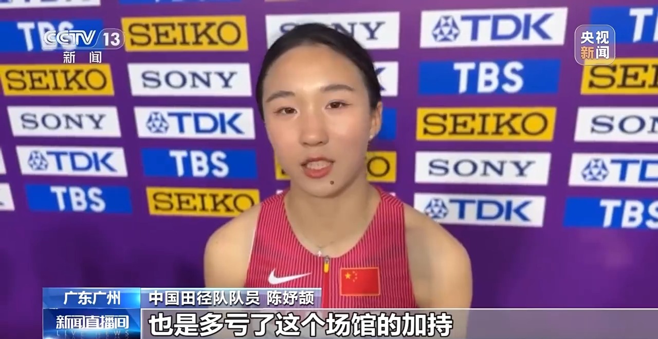 中国田径队队员 陈妤颉:跑起来脚感也是非常好,能让我们跑出这样一个成绩,也是多亏了这个场馆的加持。