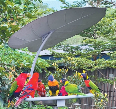 鲁里公路项目部为野生鸟类设置喂食器。