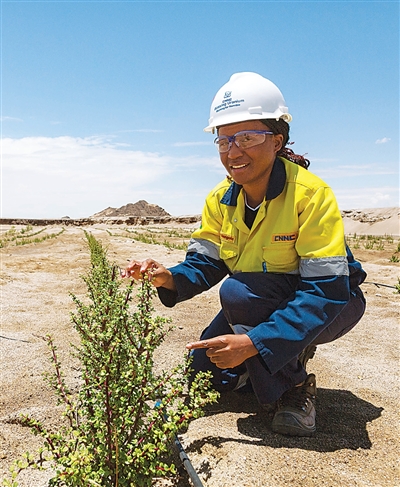 罗辛铀矿建立有效植物移栽机制。图为该公司员工正在维护移栽的植物。
