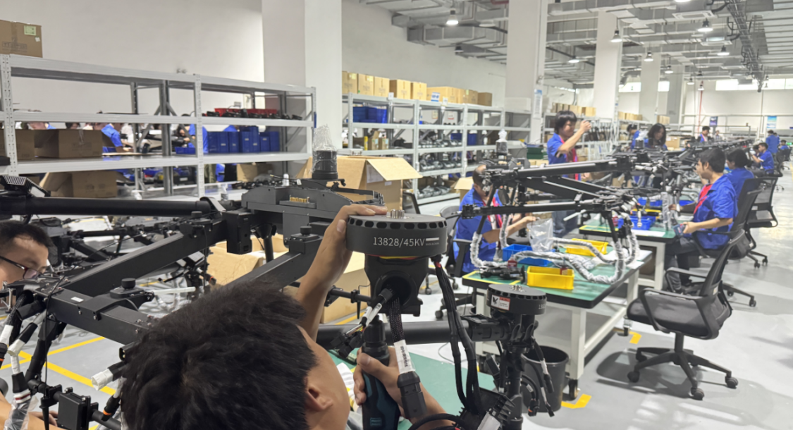 联合飞机集团产线上的组装工人正在组装农业无人机。陆颖 摄