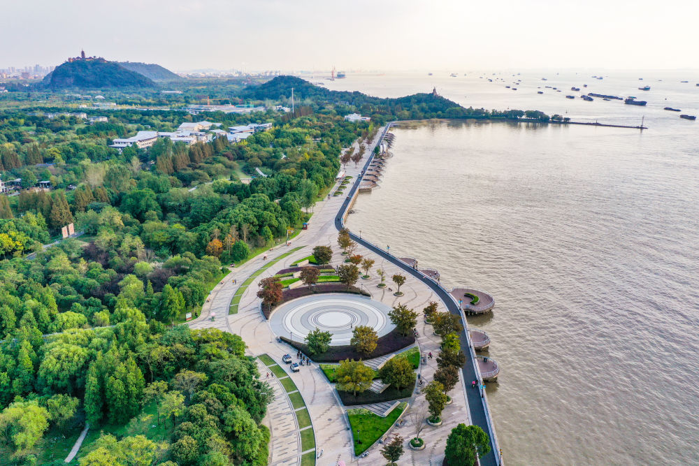 南通狼山国家森林公园沿江景色。新华社记者李博 摄