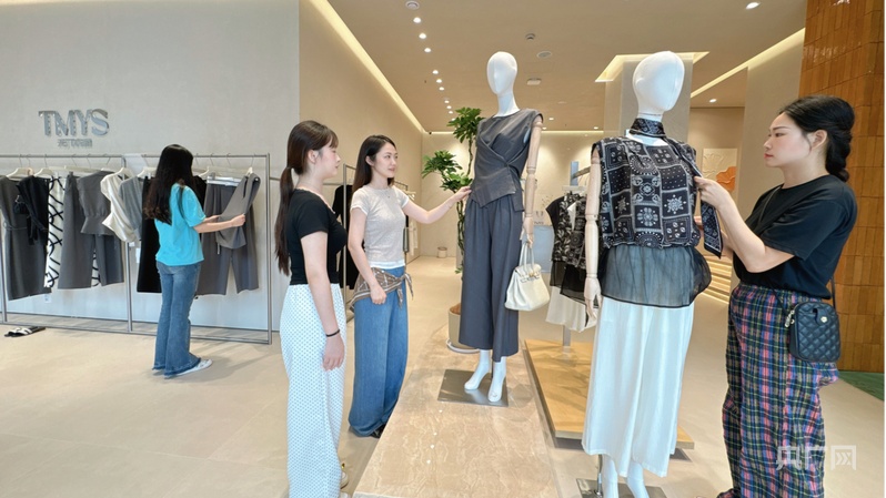 市民在“天门衣尚”品牌馆内挑选衣服(央广网发 天门市委宣传部供图)