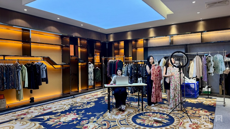天门服装电商直播带货(央广网记者赵玲 摄)