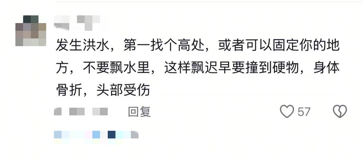 4.卷入洪水:要尽可能抓住固定的或能漂浮的东西,寻求机会逃生。