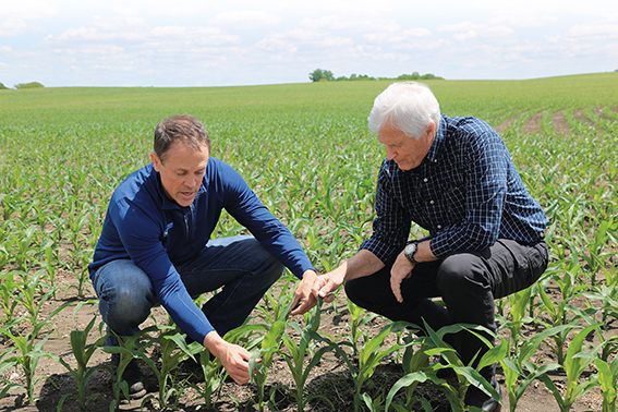 5月23日,瑞克·金伯利(右)和格兰特·金伯利在查看种植的玉米