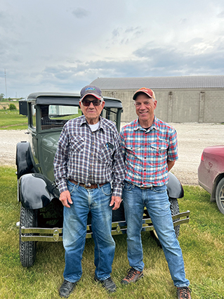5月24日,梅尔文·伦兹(左)和儿子兰迪在他的老爷车前合影