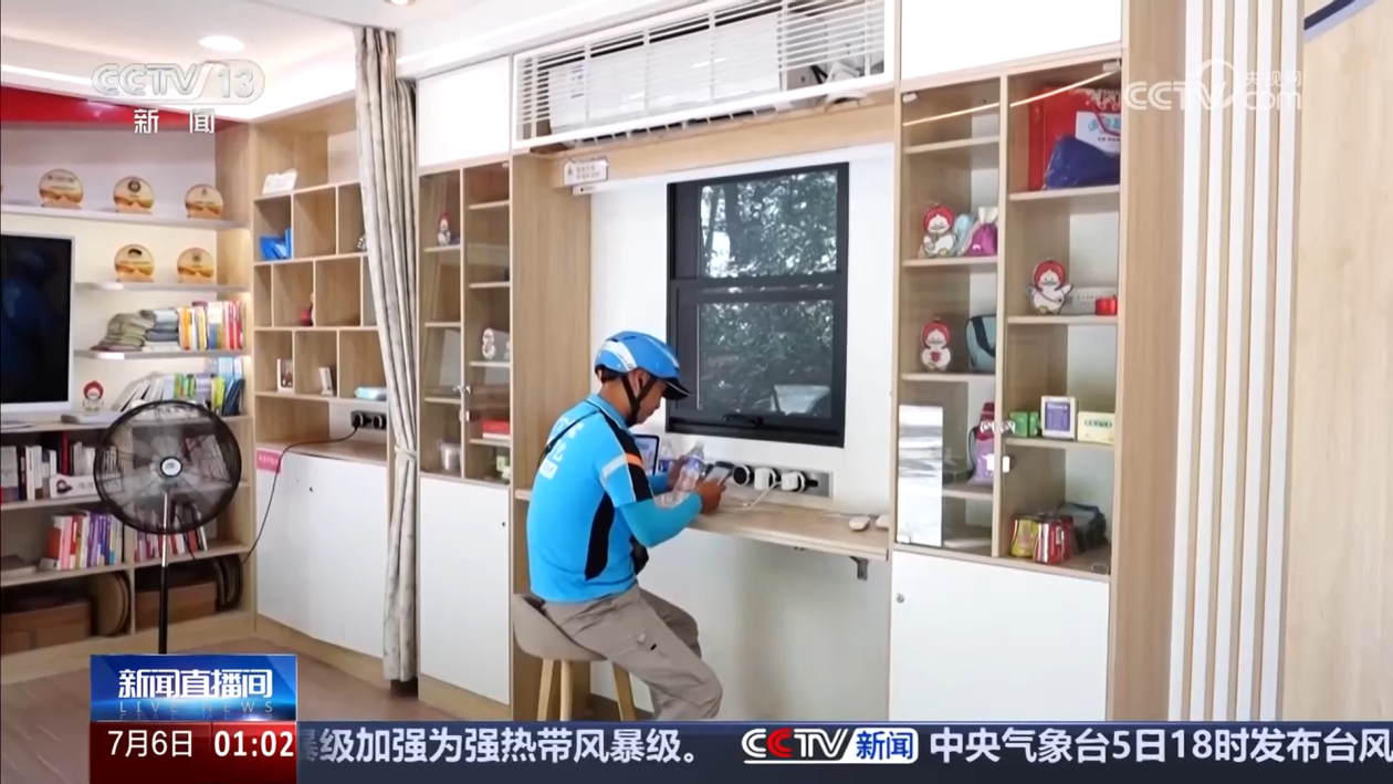 在江西吉安永新县,当地打造的“智能工会驿站”,成了环卫工人、快递小哥、外卖骑手等户外劳动者的“清凉港湾”。
