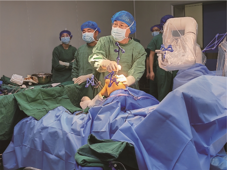 重庆援藏医疗专家开展我区首例5G远程国产机器人全膝关节置换手术。