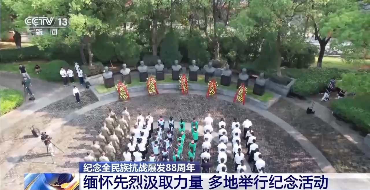 今天(7月7日)上午10时,上海淞沪抗战纪念馆举行了纪念全民族抗战爆发88周年活动。在胜利广场上,150名党员干部、市民、学生等社会各界代表,奏唱国歌、向抗战英烈敬献花篮,共同缅怀那段波澜壮阔的历史。