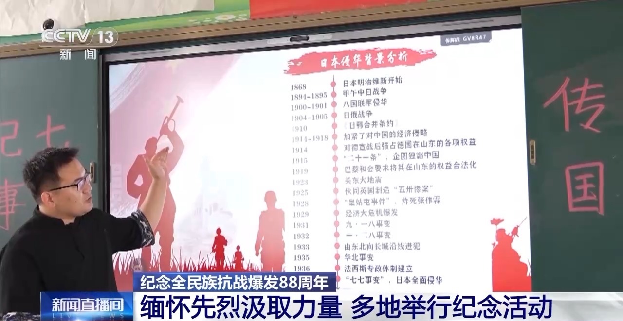 安徽宿州砀山县第二中学的师生们则通过一堂堂生动的主题班会重温历史,班会上老师们以图文、视频等形式,生动讲述了中华民族艰苦卓绝的抗战历程。