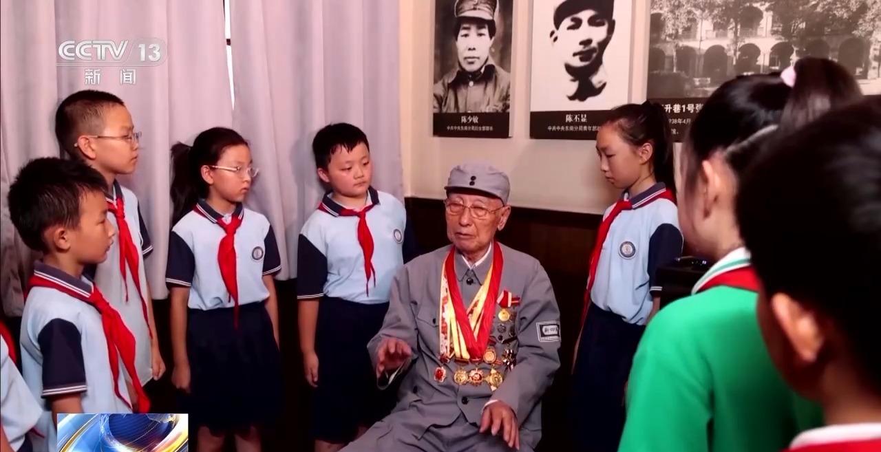 在中共中央东南分局旧址展厅里,同学们围绕在老战士李潭清身边,听他讲述当年亲身经历的战斗,深刻感受先辈们为了民族独立和解放,不畏强敌、浴血奋战的英勇精神。