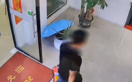 他进店后对店内灭火器进行“检查”