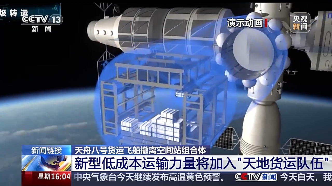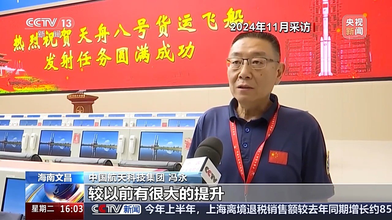 中国航天科技集团 冯永:天舟八号货运飞船相对于天舟七号在发射之前装货的能力较以前有很大的提升,那么主要是为了运送一些时效性很强的货物,为咱们空间站在轨进行科学实验提供了一个很大的技术支撑。比如说一些生物制剂、细胞装置培养等等这样的一些科学项目有很大的一个帮助。