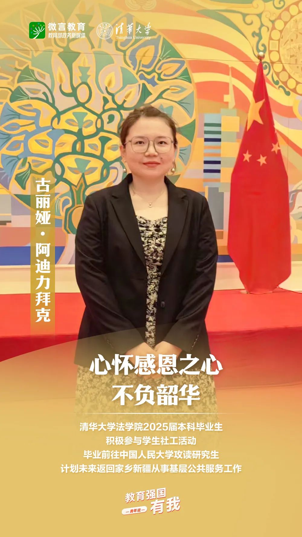 习近平总书记强调,希望广大青年坚定理想信念,厚植家国情怀,练就过硬本领,发扬奋斗精神,到祖国和人民最需要的地方发光发热,为中国式现代化建设贡献青春力量。教育强国建设,青年何为?教育部政务新媒体推出“教育强国,有我!”网络主题宣传活动之“青年说(报国篇)”系列,展现青年学子将个人理想融入国家发展的青春担当。今天,跟教育小微通过1个视频和1组海报,一起来看清华大学学子的毕业选择——