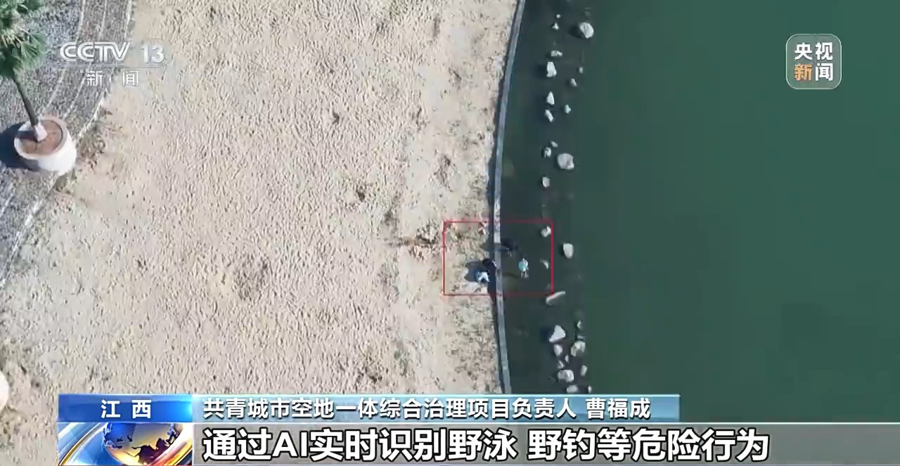 江西共青城空地一体综合治理项目负责人 曹福成:我们部署的3台“宝莲灯”全自动机库,可全天候开展无人机巡查。针对暑期安全,重点加强水域巡检,通过AI实时识别野泳、野钓等危险行为,发现后立即喊话驱离并联动责任单位处置。目前已完成24平方公里水域覆盖,筑牢防溺水安全网。