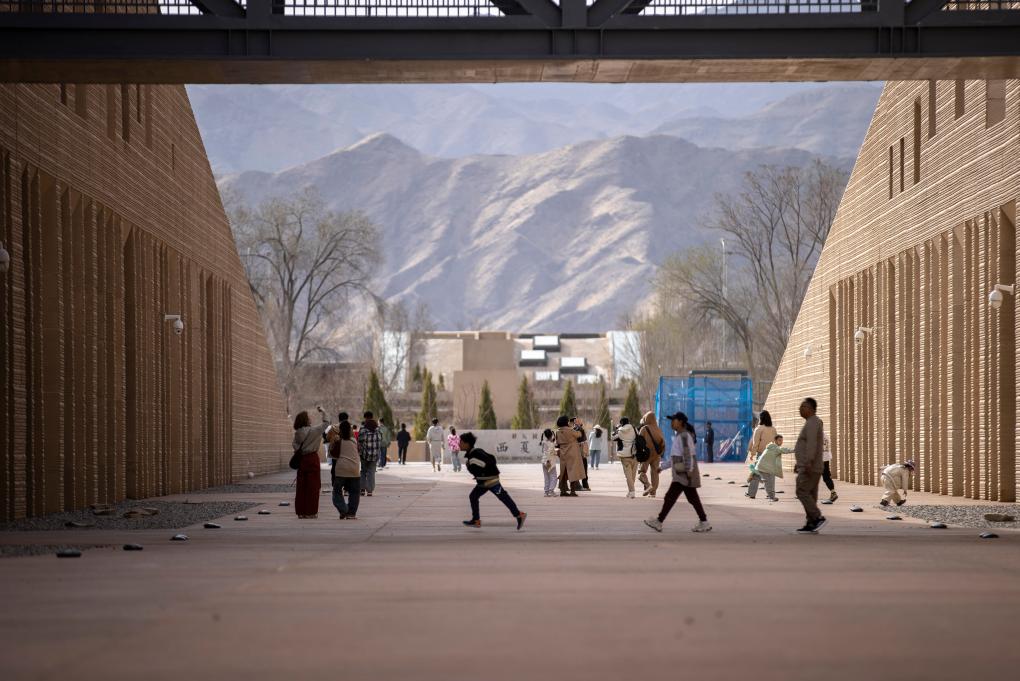 4月5日,游客在宁夏银川西夏陵景区内游玩。新华社记者 杨植森 摄