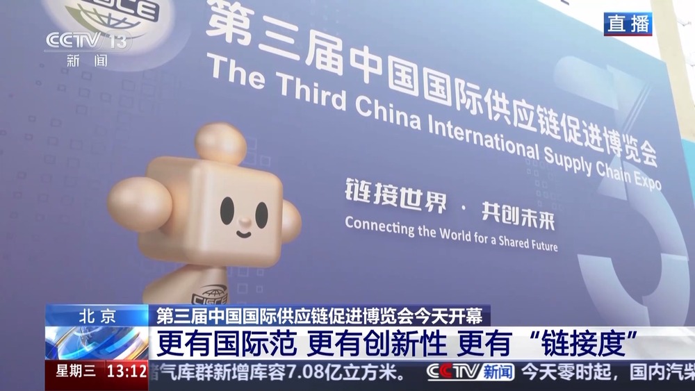 总台央视记者 宋菀:我现在是在中国国际展览中心顺义馆为大家带来直播报道。今天,第三届链博会拉开帷幕。在直播的一开始,我们先来给大家介绍下开展首日有哪些重要日程安排。今天上午,第三届链博会的开幕式在这里的主会场举行,1100多位中外嘉宾围绕着“链接世界、共创未来”这一主题,进一步凝聚共识、共谋发展,现场还发布了《第三届中国国际供应链促进博览会北京倡议》。