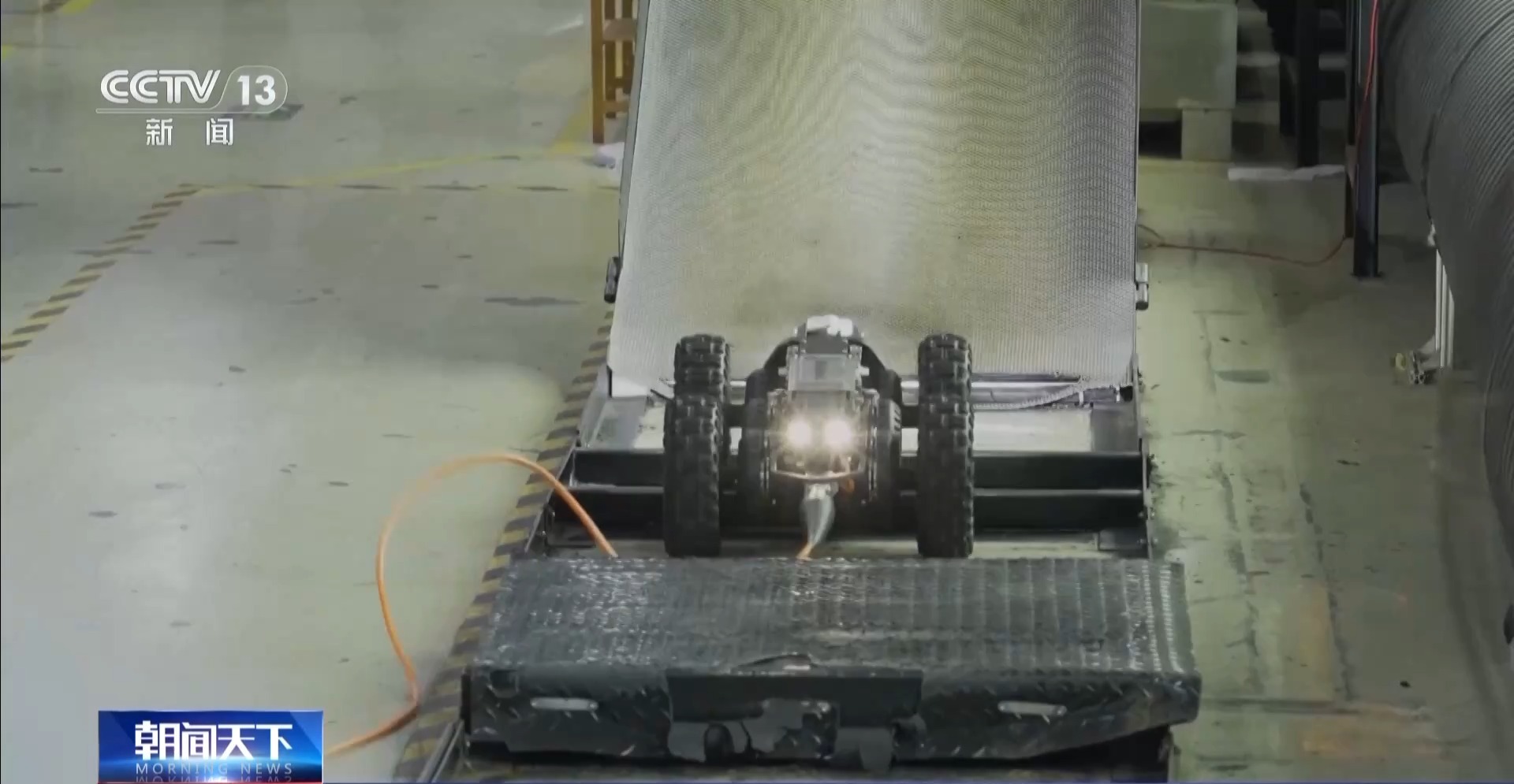 南京同力建设有限公司项目施工负责人 陈静:您看到的那台小推车上面,它有一个自控装置,包括他手上那台微型电脑,类似于咱们的无人机操控一样,可以控制机器人的方向,实现有线包括无线的传感。