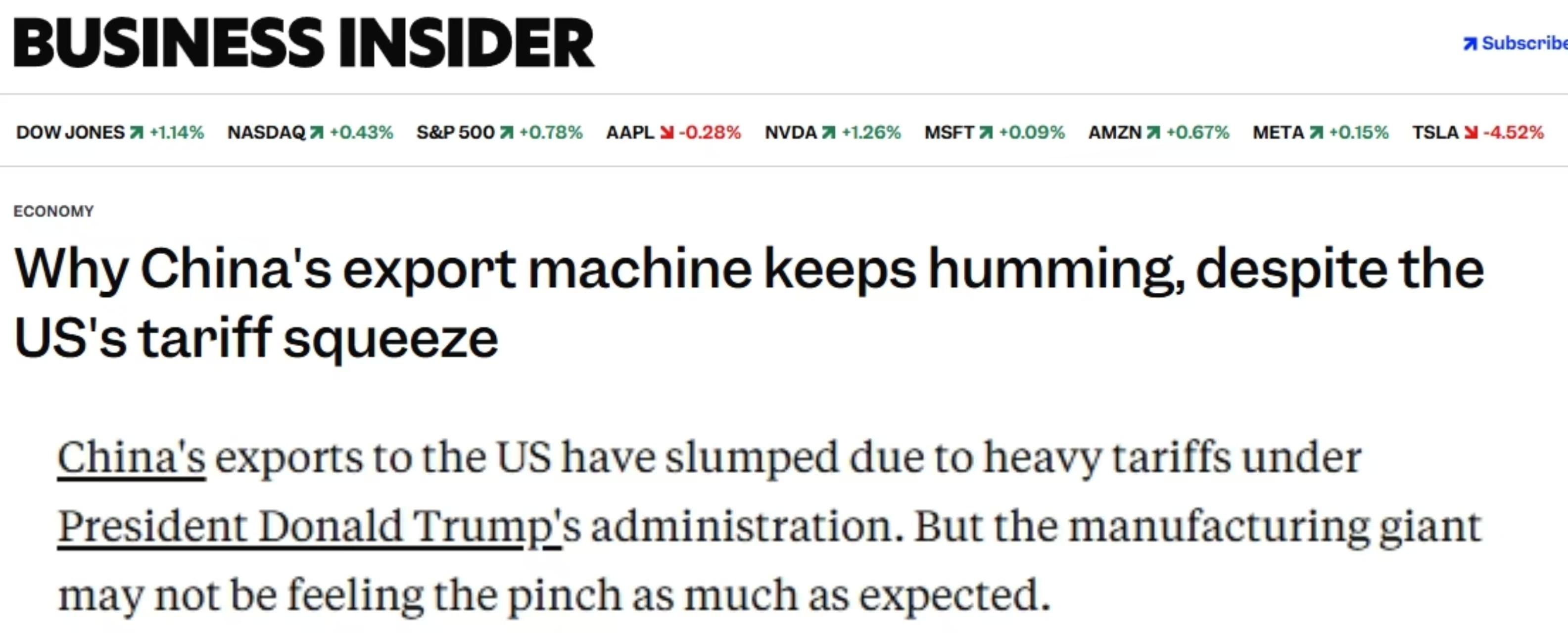 美国《商业内幕》网站近日发布的一篇报道,分析了中国出口引擎为何在美国关税压力下依然强劲的原因。