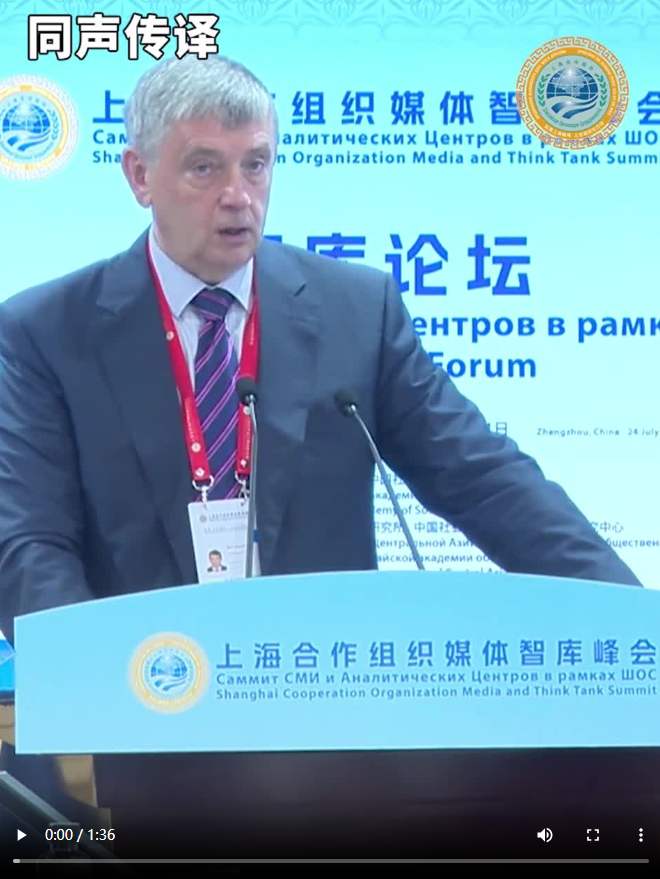 7月24日,上海合作组织媒体智库峰会智库论坛在河南郑州举行。俄罗斯乌拉尔联邦大学董事会主席、校长维克多·卡克沙罗夫在开幕式致辞中指出,本次论坛为加强对话合作注入新动能。