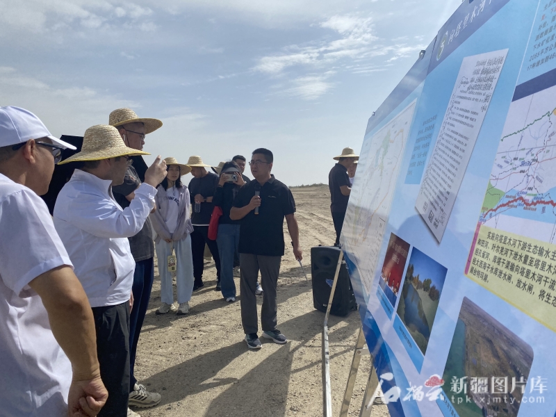 “从2000年至今,已经先后组织实施了26次向塔里木河下游生态输水,累计输送生态水102亿立方米,塔里木河下游的生态环境已得到明显改善。”新疆塔里木河流域干流水利管理中心大西海子水库管理站副站长陈世平站在展板前介绍道。
