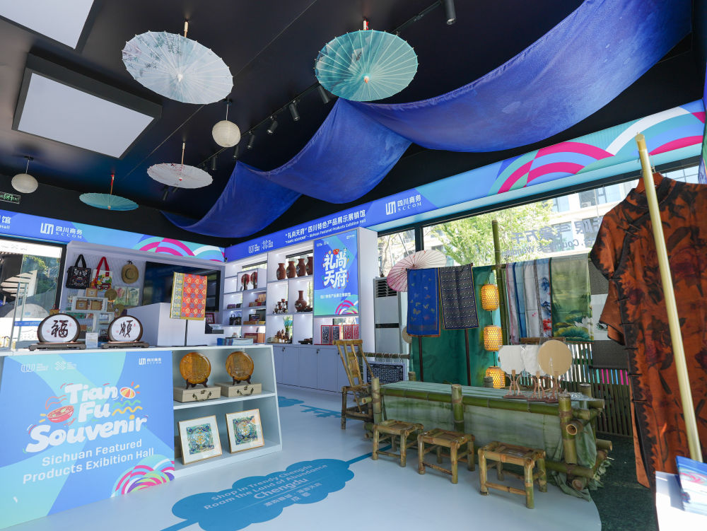 8月3日,在成都世运会运动员村A区拍摄的四川特色产品展示展销馆。新华社记者 王曦 摄