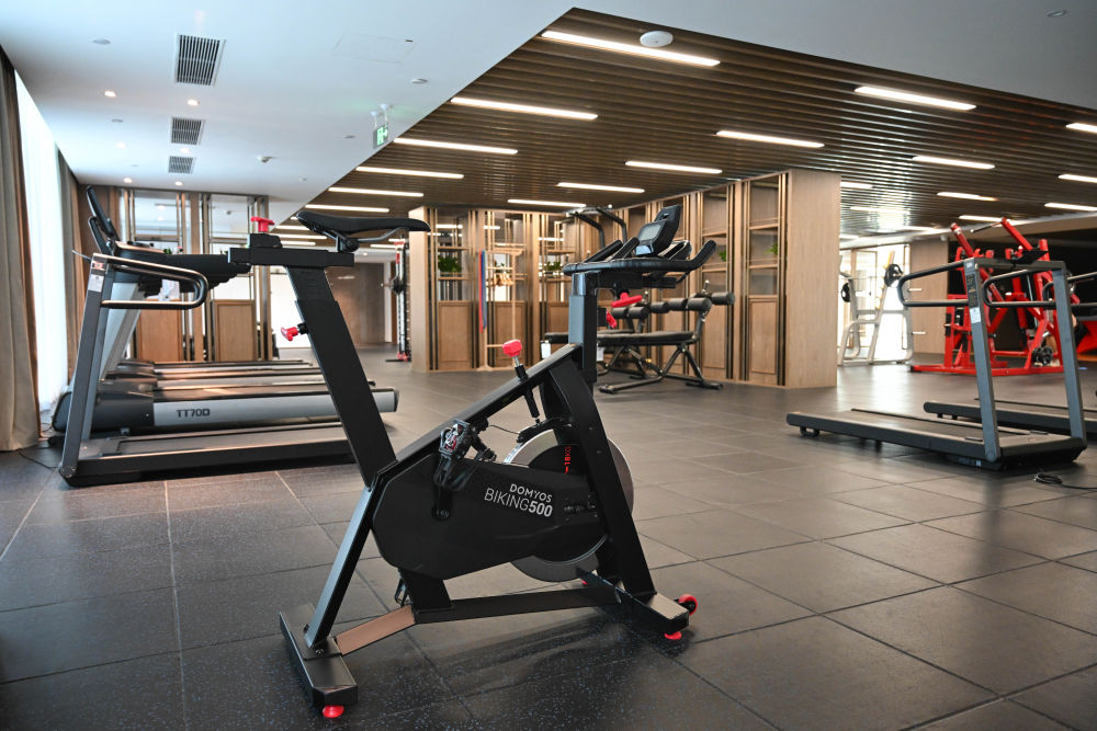 8月3日,在成都世运会运动员村内拍摄的运动员健身房。新华社记者 胥冰洁 摄
