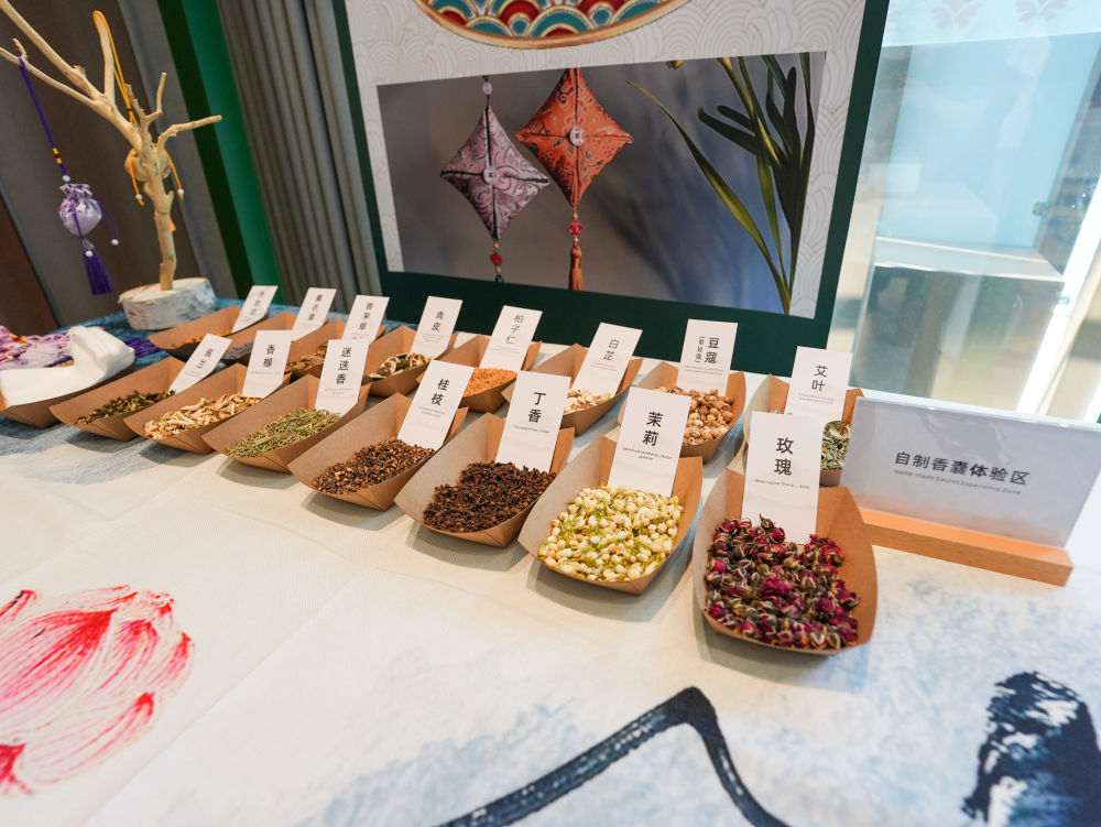 8月3日,在成都世运会运动员村A区中医药体验馆拍摄的自制香囊体验区。新华社记者 王曦 摄
