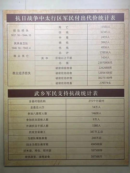 武乡军民支持抗战相关统计。(新华网 于杨 摄)