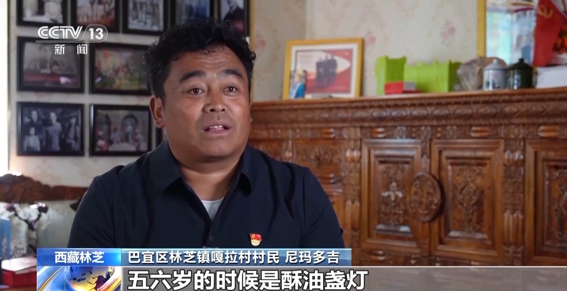 西藏林芝市巴宜区林芝镇嘎拉村村民 尼玛多吉:过去没有什么旅游收入,步道都是泥巴路,五六岁的时候用的是酥油盏灯。现在不分白天和晚上,跟白天一样都有光,嘎拉村的步道干净整洁。要说这些变化,一天一夜也说不完。