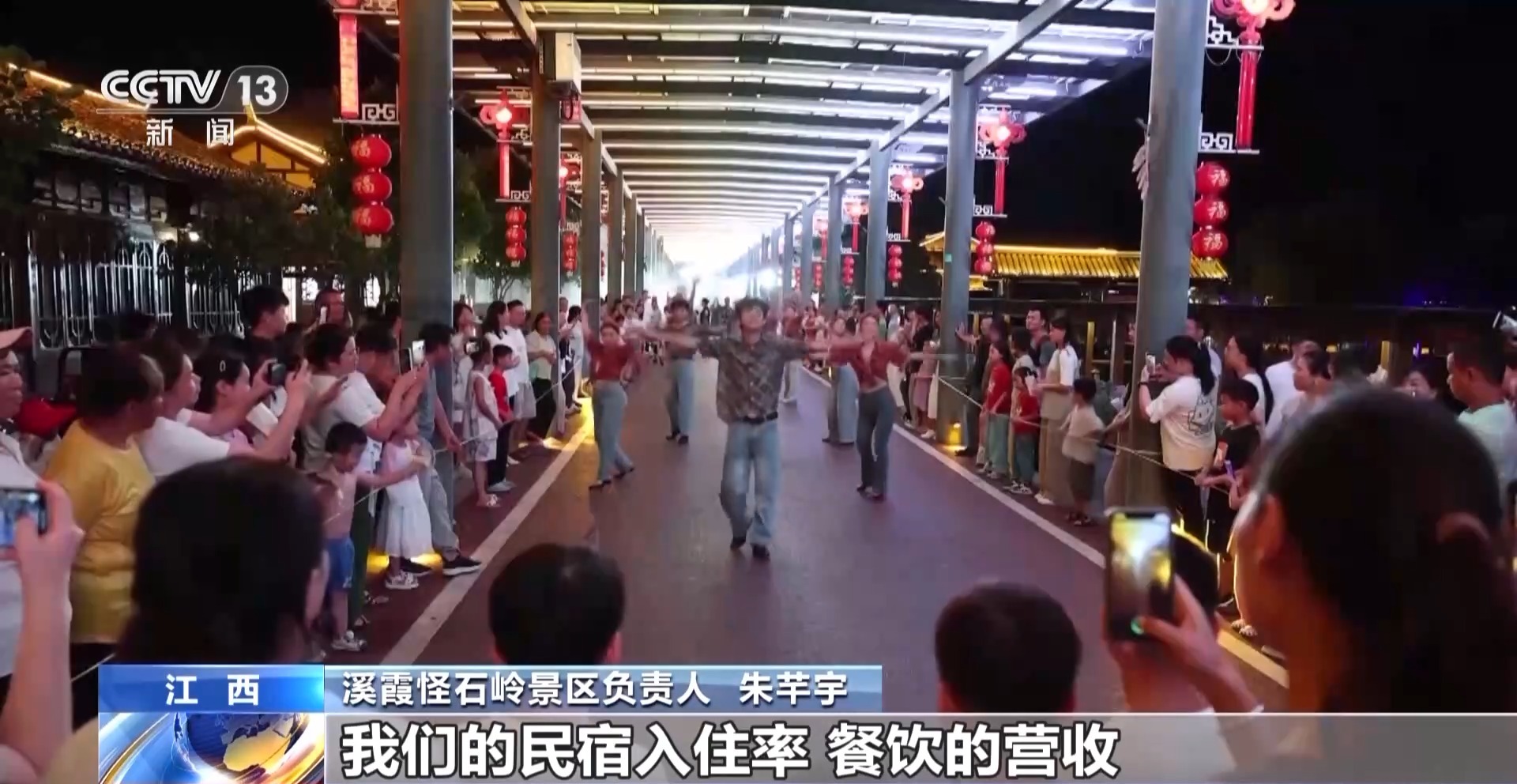 溪霞怪石岭景区负责人 朱芊宇:夜游开放第一天就来了三四千人,我们的民宿入住率、餐饮的营业额、特色农产品消费都有很大提升,实现了从过去门票经济向多元增收的转变。