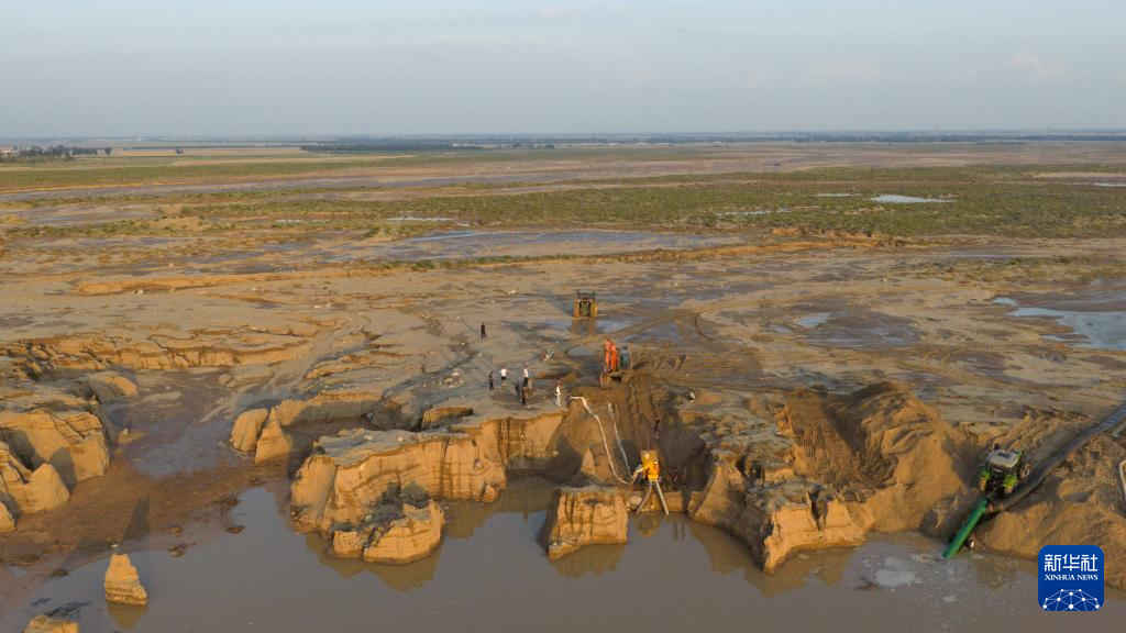 8月17日,在内蒙古巴彦淖尔市乌拉特后旗乌盖苏木东乌盖沟,工作人员开展搜救(无人机照片)。新华社记者 马金瑞 摄