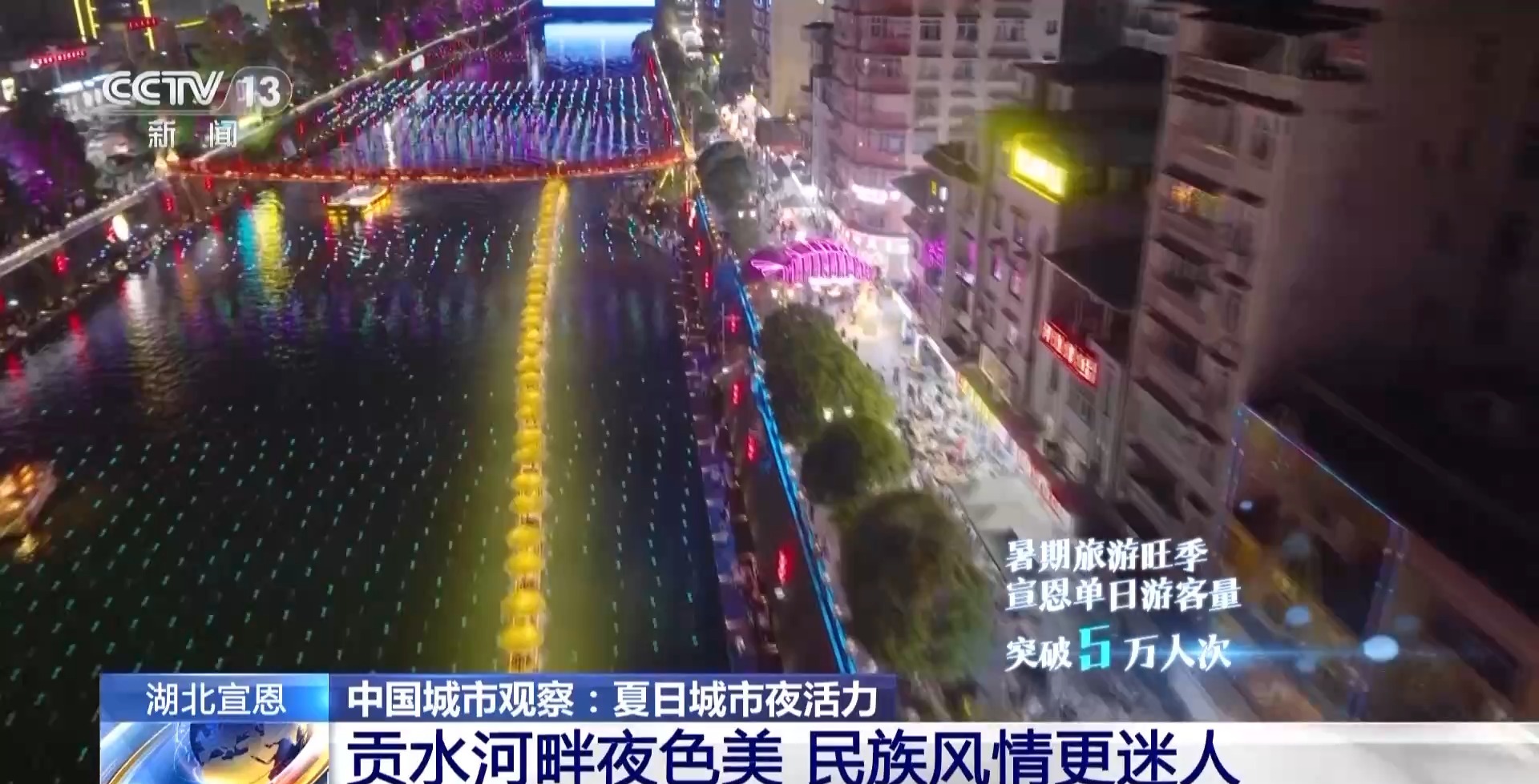 贡水河畔,流光溢彩,竹筏如游龙戏水,土家墨达楼与万家灯火交相辉映。一系列文化活动激情上演,为湖北宣恩小城注入青春活力。