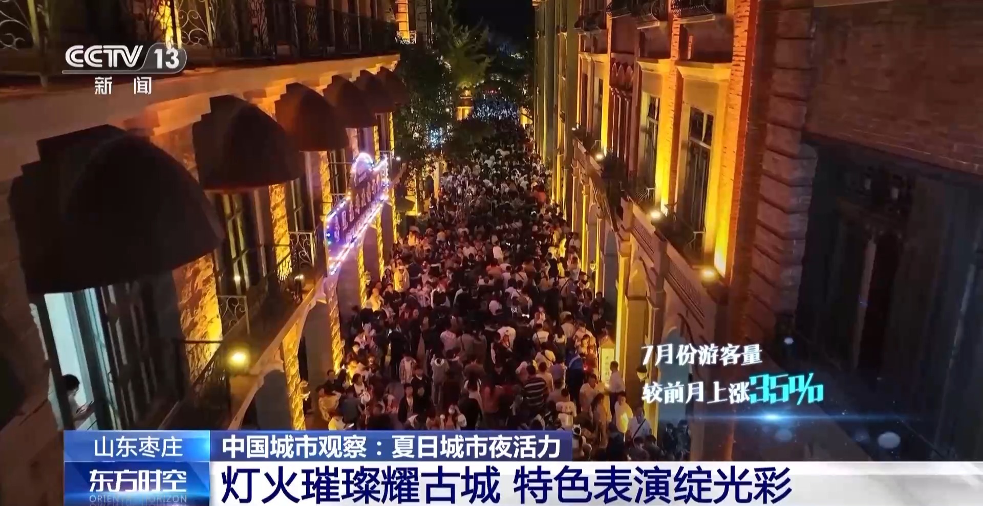 广场上,“火龙钢花”表演引来阵阵喝彩,铁水泼洒空中,点亮夜空;山东快书、鲁南皮影、苏北大鼓轮番上演。这个夏天,丰富的活动带动古城人气攀升,7月份游客量较前月上涨35%。