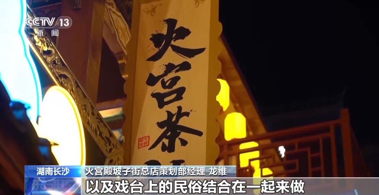 火宫殿坡子街总店策划部经理 龙维:在很多人的印象当中,火宫殿就是一个吃小吃的地方。但是通过我们今年的装修升级以及茶社的外摆,我们把小吃、茶点、茶以及戏台上的民俗结合起来,给大家能够提供一个逛街逛累了之后有可以歇脚的地方。