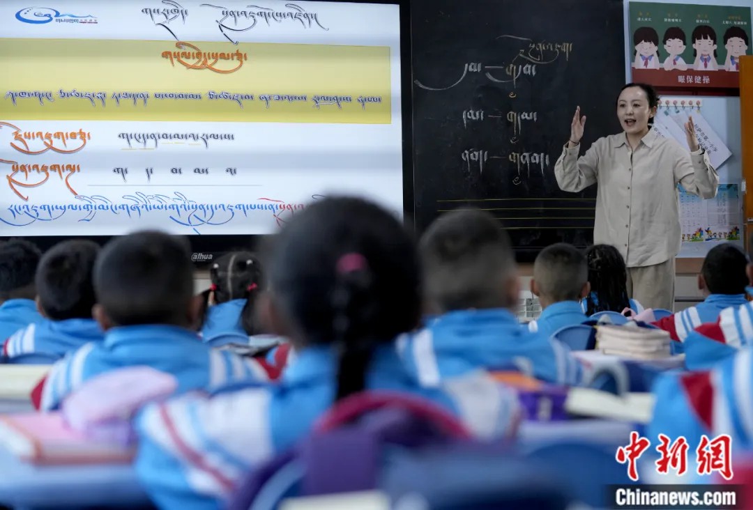 柯马凯:这种指控与我的实地观察截然相反。例如,在林芝市第二小学,我观察到学生们每周都有藏语文课程,老师也是藏族,整节课都采用藏语授课。教材亦使用藏文编写,全书仅部分印刷信息采用汉字。孩子们用藏文做笔记,课间也用藏语交流。下课后,我用普通话和他们交谈,发现他们的普通话也讲得很好。实际上,西藏中小学校都开设了国家通用语言文字课程和藏语言文字课程。