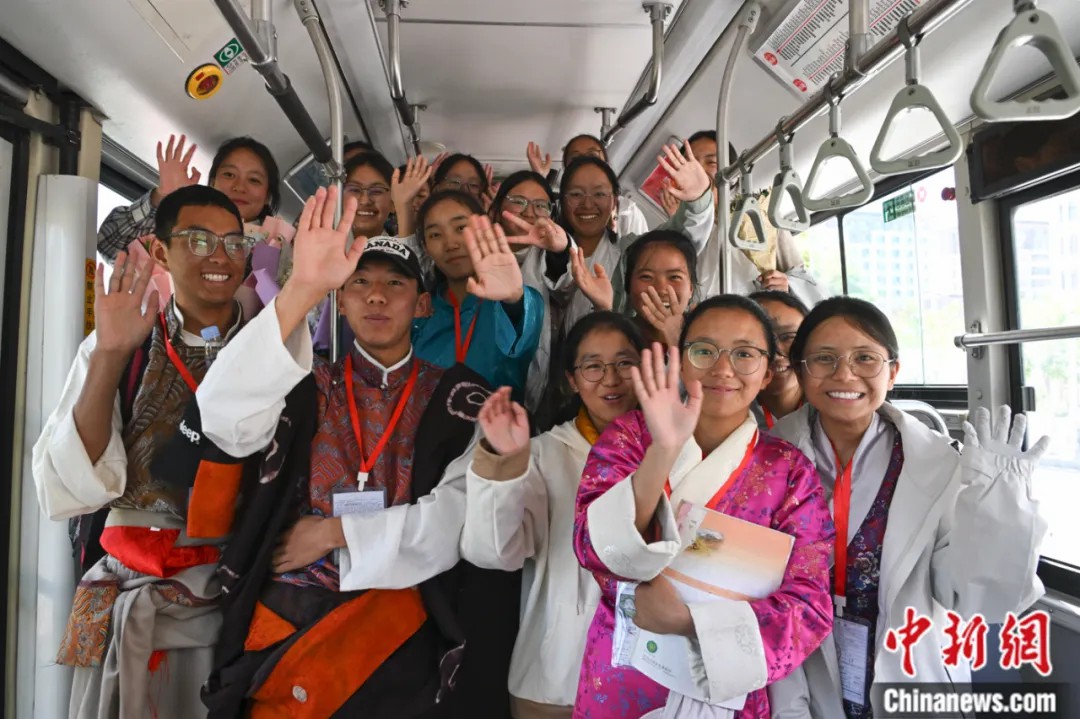 2025年6月9日,西藏自治区2025年普通高考完成所有科目考试。图为考生们结束考试,准备乘车离开西藏拉萨江苏实验中学考点。中新社记者 贡嘎来松 摄