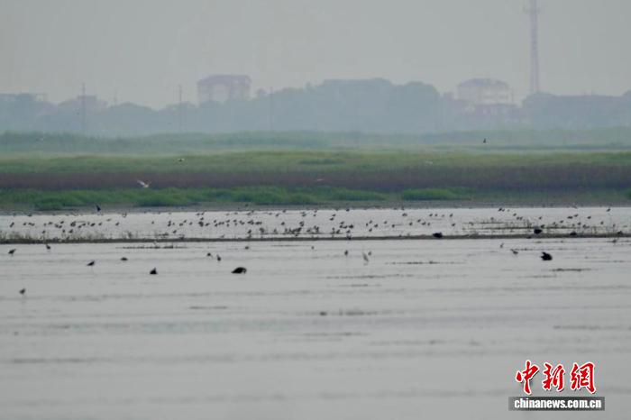 初秋时节,在位于江西省南昌市新建区的江西鄱阳湖南矶湿地国家级自然保护区(以下简称“南矶湿地保护区”),成群的候鸟在此栖息觅食。远远望去,蓝天、白云、候鸟和水面构成了一幅壮美的生态画卷。