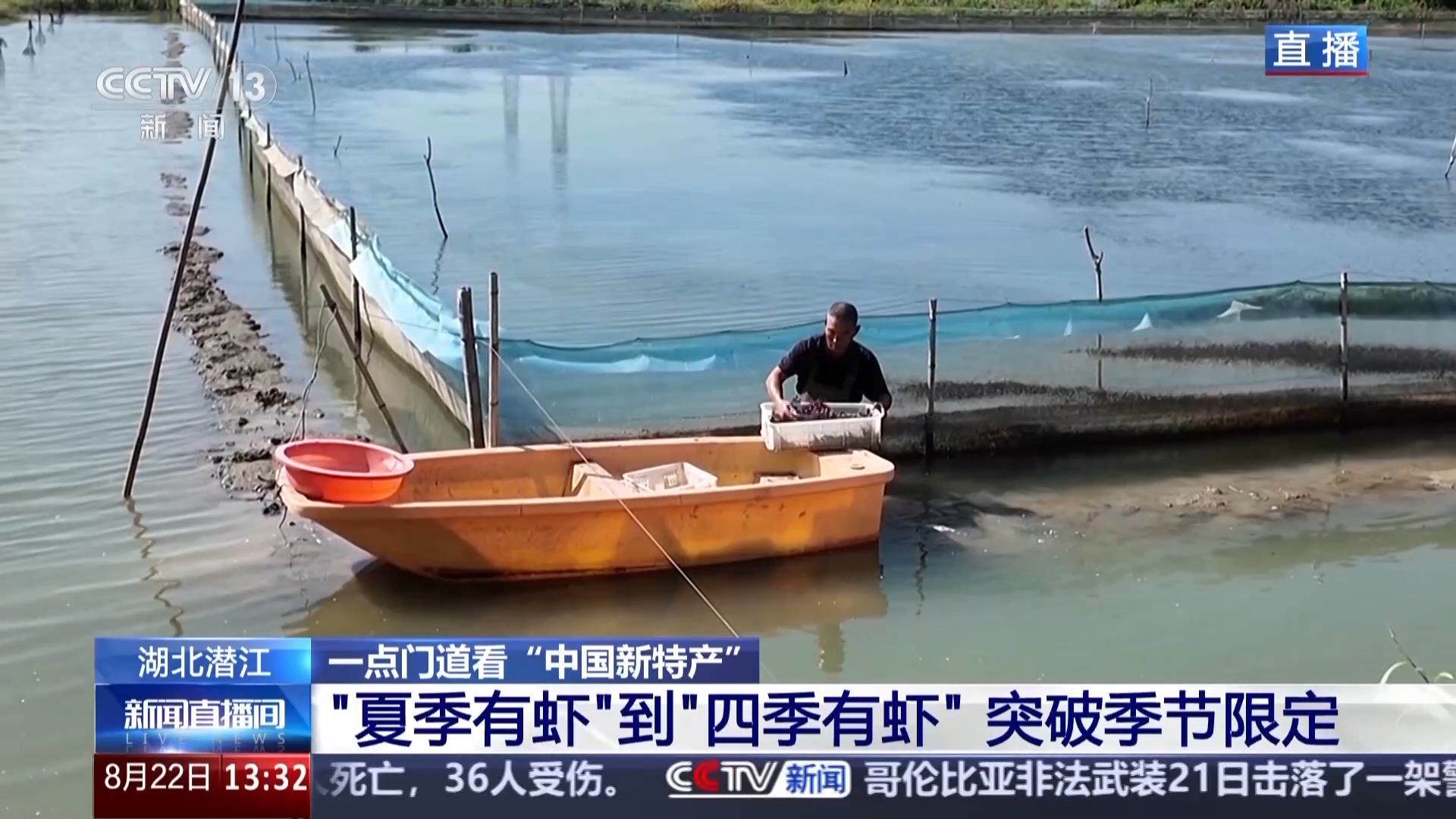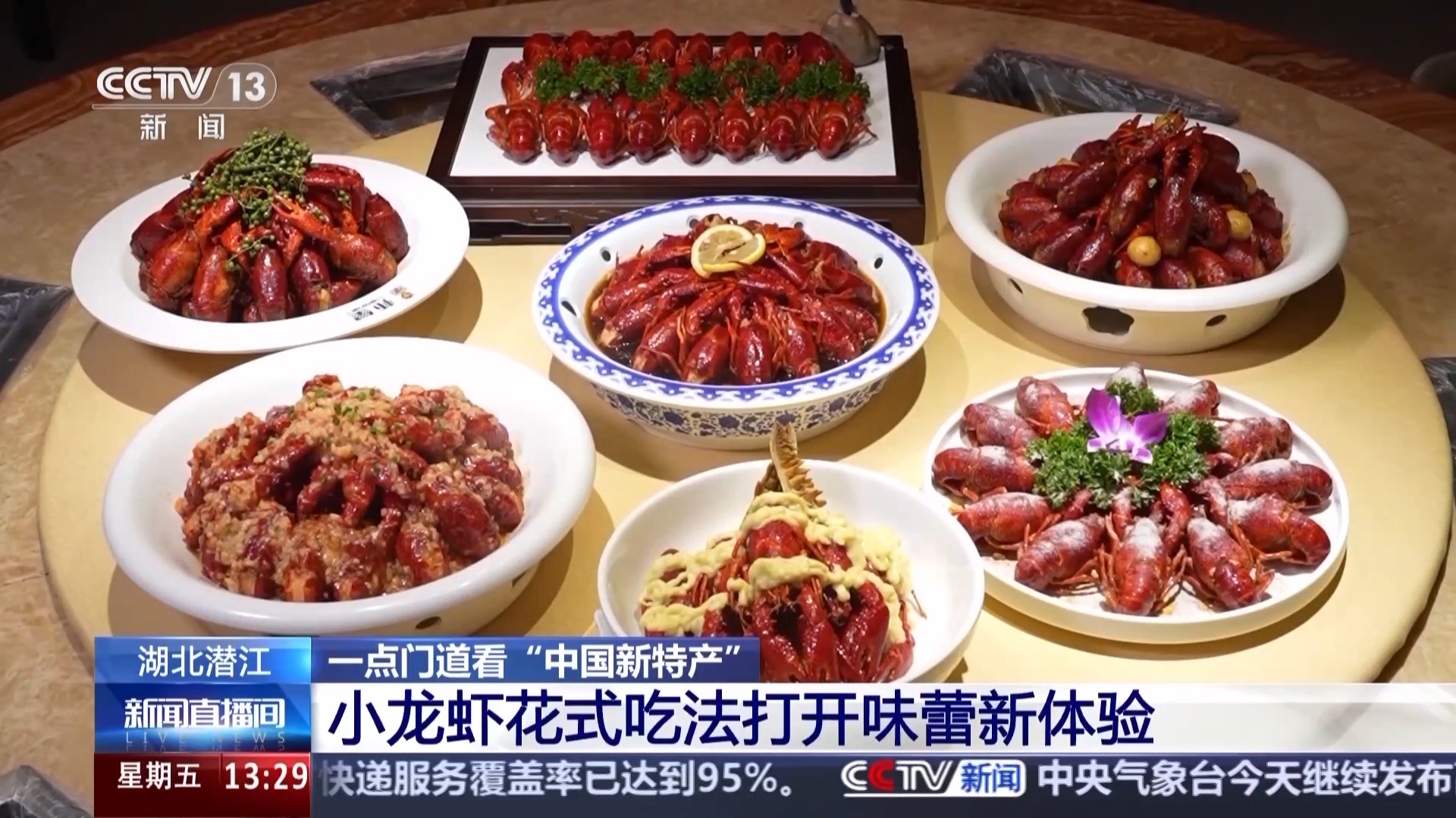 今天在演播室,我们也为大家带来了两道潜江小龙虾的新品,这道是“榴梿虾”,大家可以看到,这是将软烂的榴梿肉与龙虾一起烧制,看着就非常入味,直播间里现在都飘着榴梿浓郁的味道。旁边还有一款神秘口味的小龙虾,看着平平无奇,但是据说非常独特,可能会颠覆您对小龙虾口味的印象,和咱们平时喝的某种饮品有关,那究竟是什么味道呢?咱们先卖个关子,让我们跟随总台记者的镜头,一起走进潜江,看看那里的龙虾盛宴。