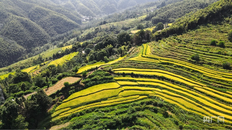 丰收的谢坪村梯田满目金黄(央广网记者 王一凡 摄)