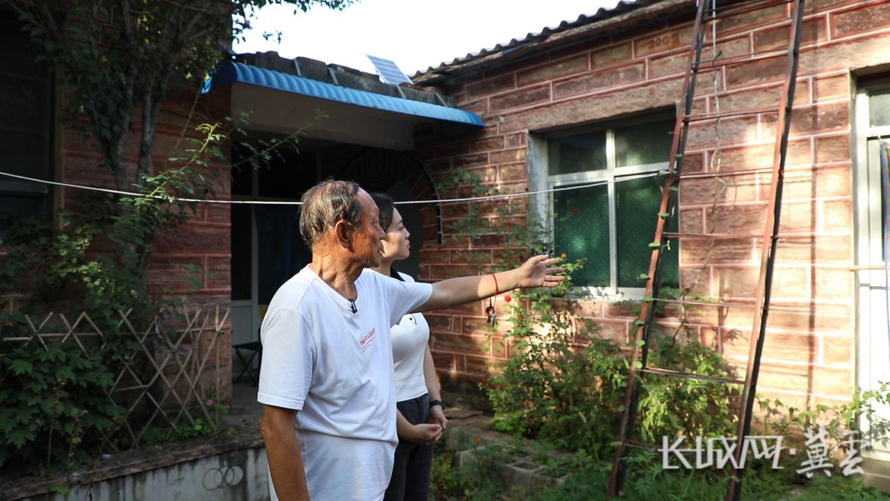 邢台市坡子峪村村民李更臣向记者介绍老院东屋曾住过八个抗大女学员。长城网·冀云客户端记者 李全 摄
