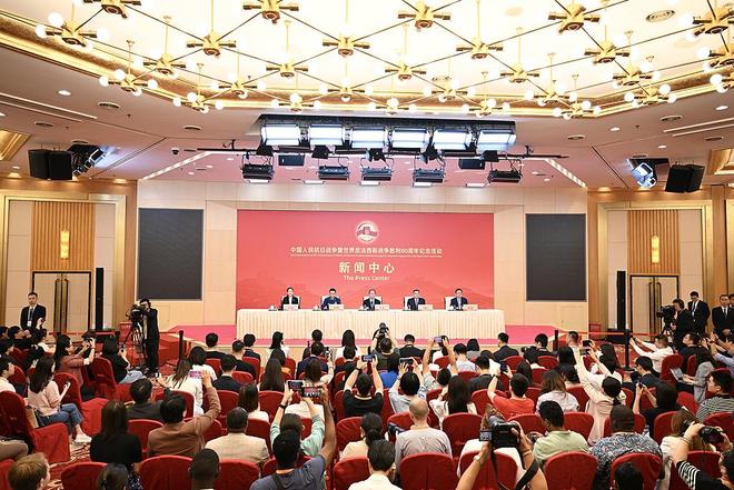 28日,中国人民抗日战争暨世界反法西斯战争胜利80周年纪念活动新闻中心在位于北京的梅地亚新闻中心举办第一场记者招待会 中新社