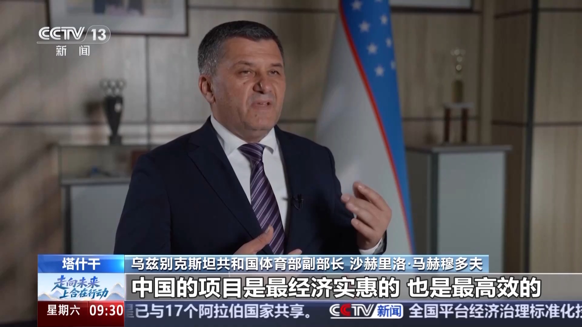 乌兹别克斯坦共和国体育部副部长 沙赫里洛·马赫穆多夫:中国的项目是最经济实惠的也是最高效的 ,工期短、质量优,我认为我们在这个决策上完全正确。