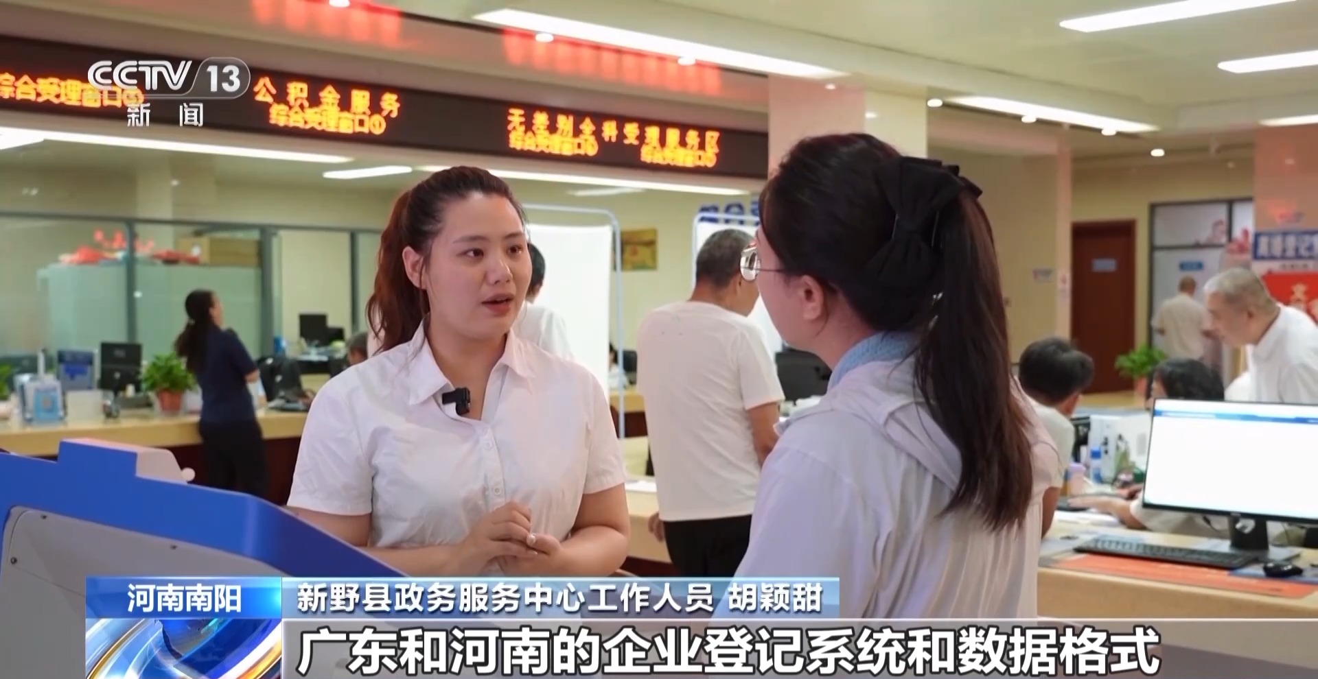 南阳市新野县政务服务中心工作人员 胡颖甜:广东和河南的企业登记系统和数据格式都有差异,因此需要人工去进行核对和补漏。