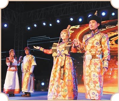 中蒙两国青年在中蒙文化交流周期间展示民族服饰。