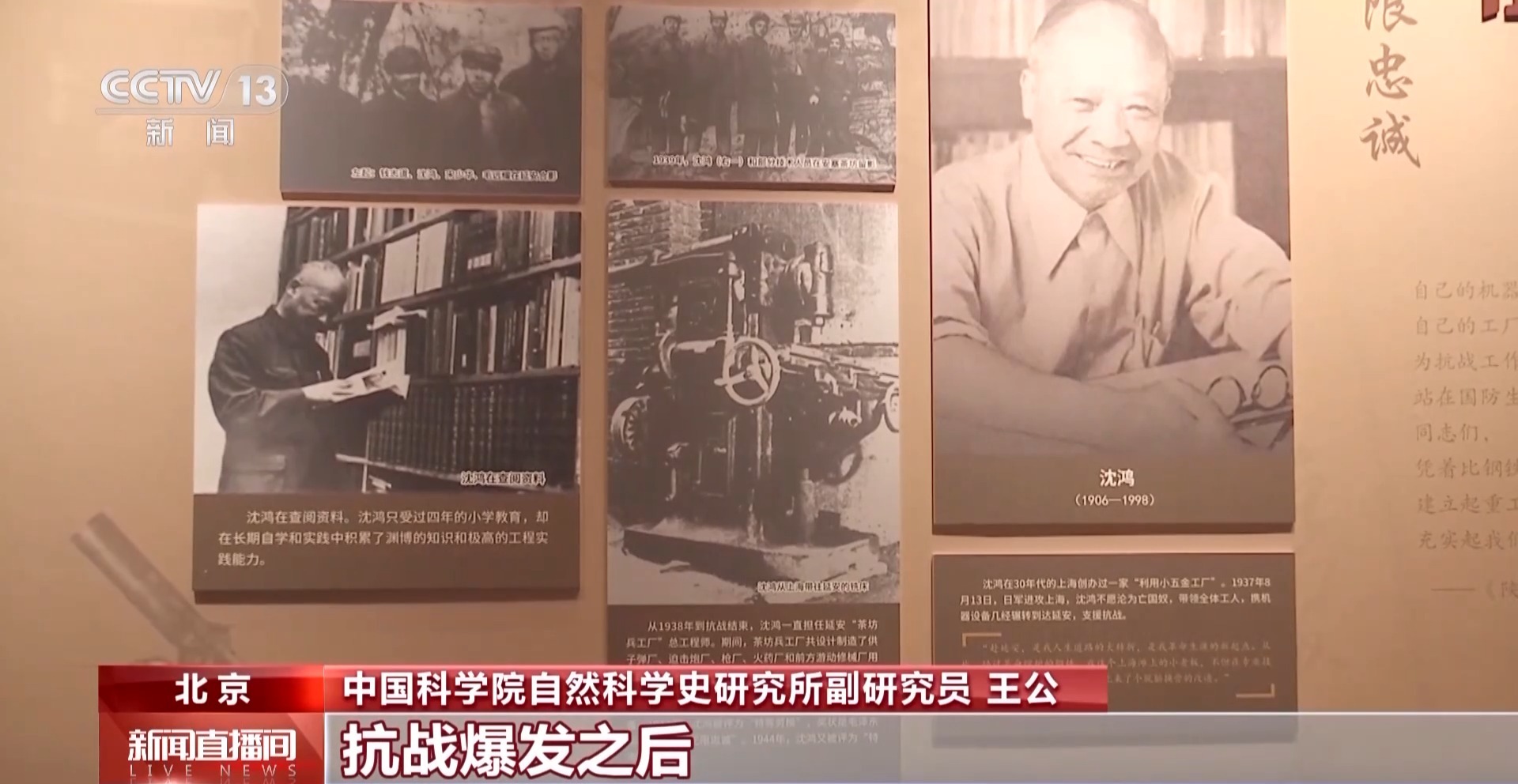 中国科学院自然科学史研究所副研究员 王公:沈鸿在抗战前创办了一个很大的机器厂,抗战爆发之后,他了解到抗日根据地陕甘宁边区欢迎科技人才过去,他就带了10架机器和7名工人到了延安陕甘宁根据地。他带到延安一架铣床,这些机器非常有用,因为它是工业母机,可以用这些机器再来生产机器,就用沈鸿带到延安的这些机器,后来一共生产出了134套各种各样的机器,为整个延安的兵工事业奠定了非常好的基础。
